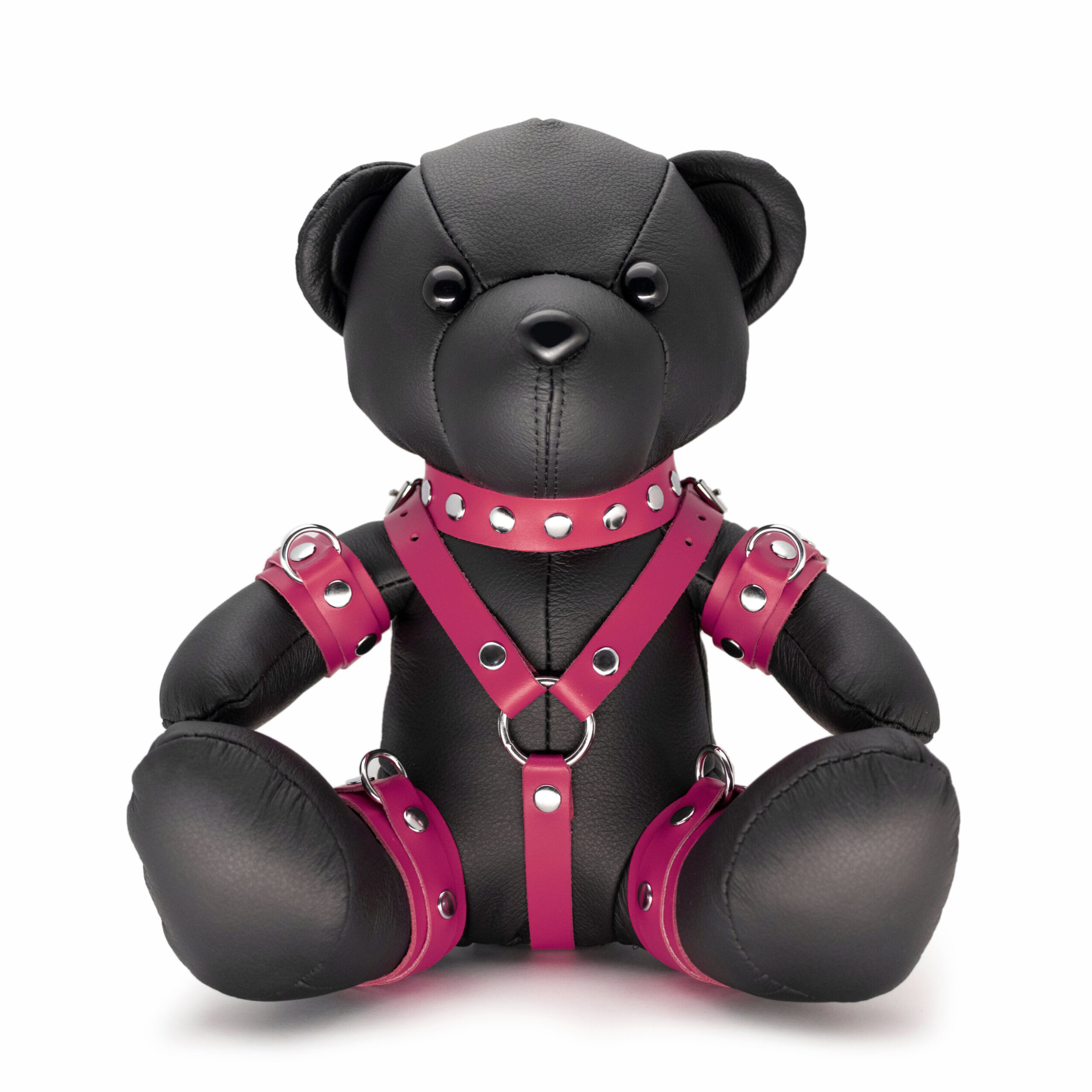 EDDY, der BDSM-Teddy, ist ein einzigartiger Teddybär mit Lederausrüstung.