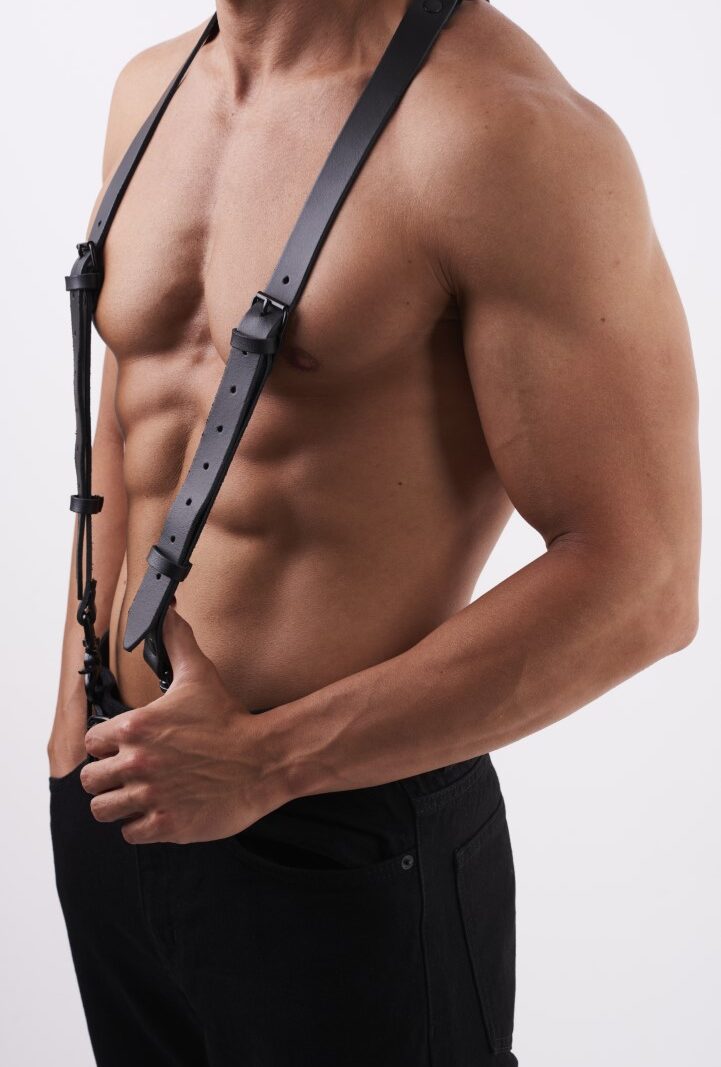 EDDY, der BDSM-Teddy, ist ein einzigartiger Teddybär mit Lederausrüstung.