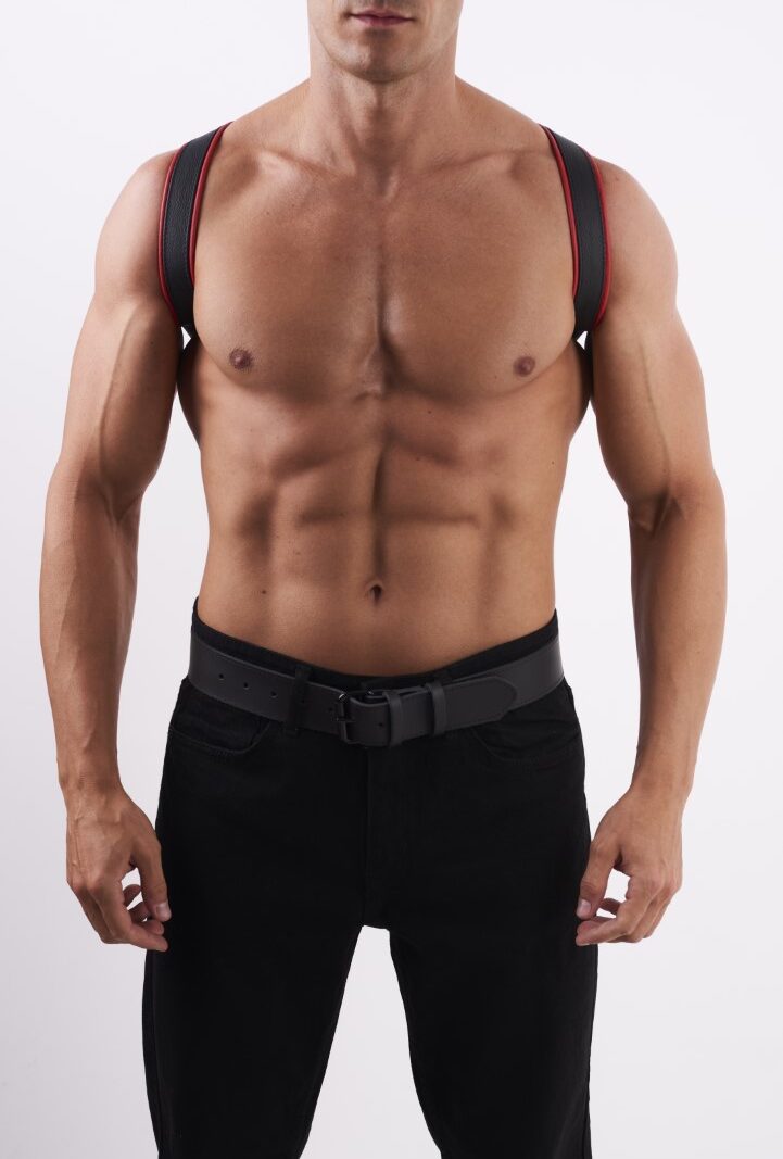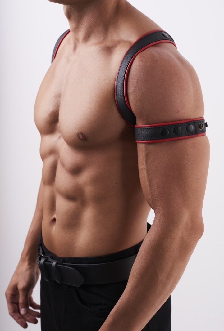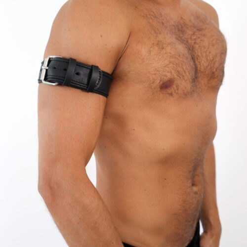 Combine all leather armbands with the matching accessories, like the leather harness or the leather jock.