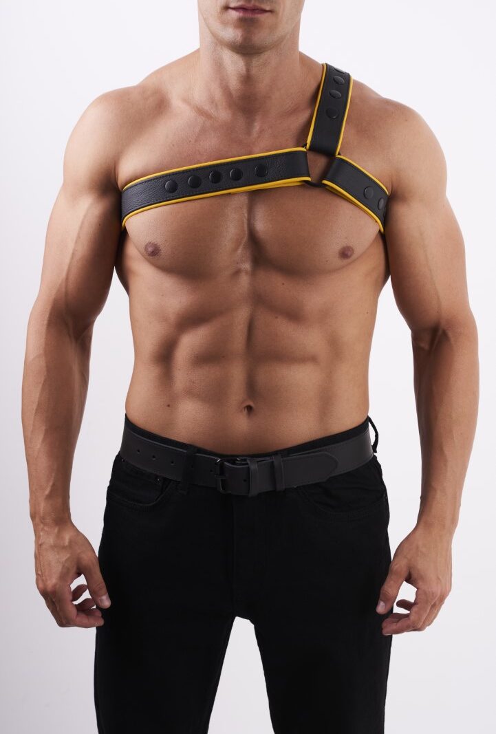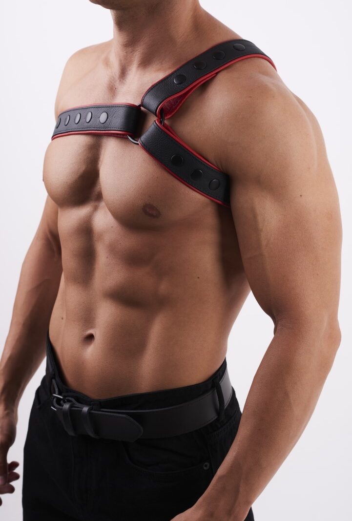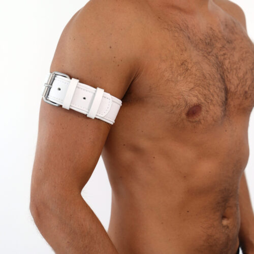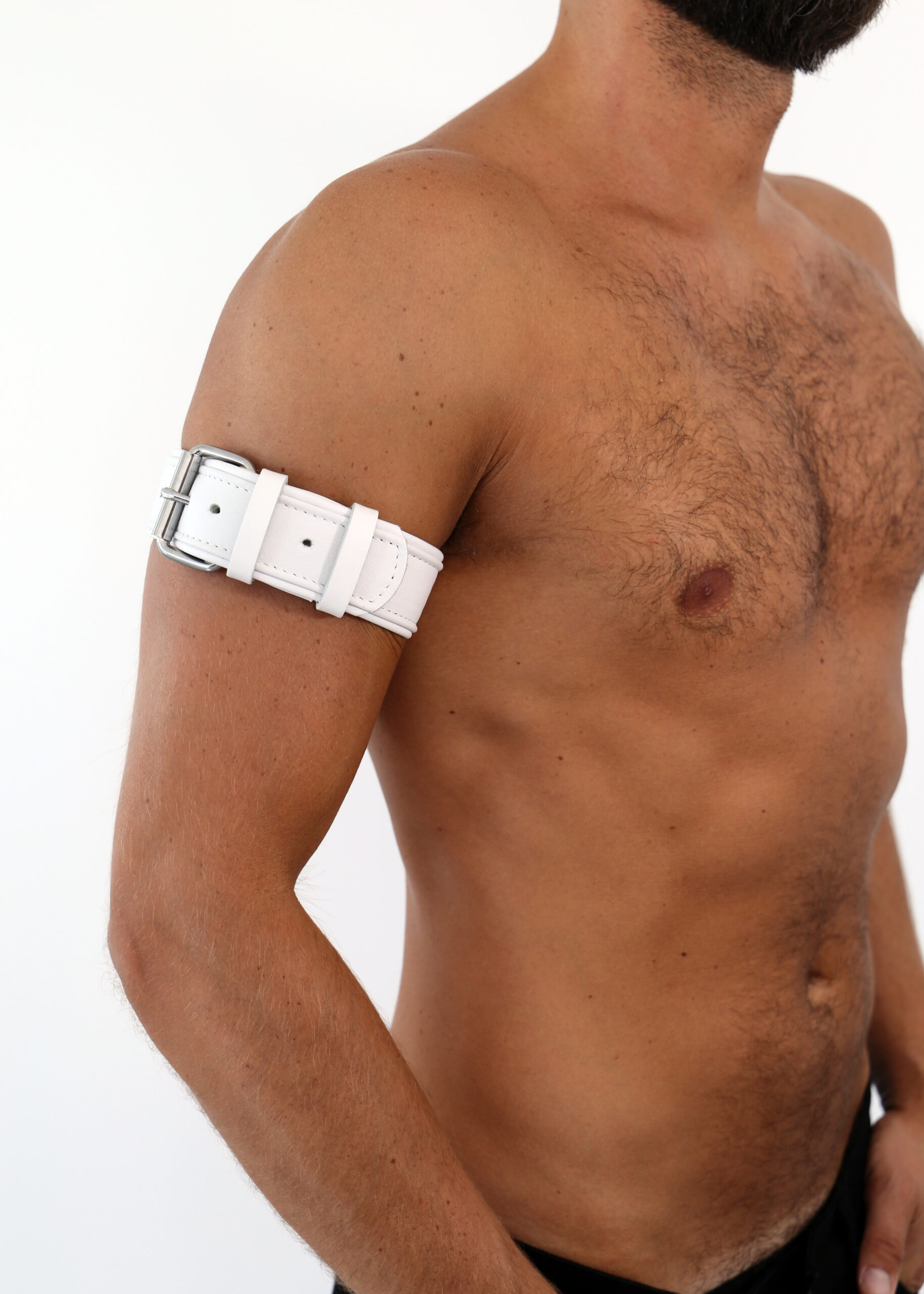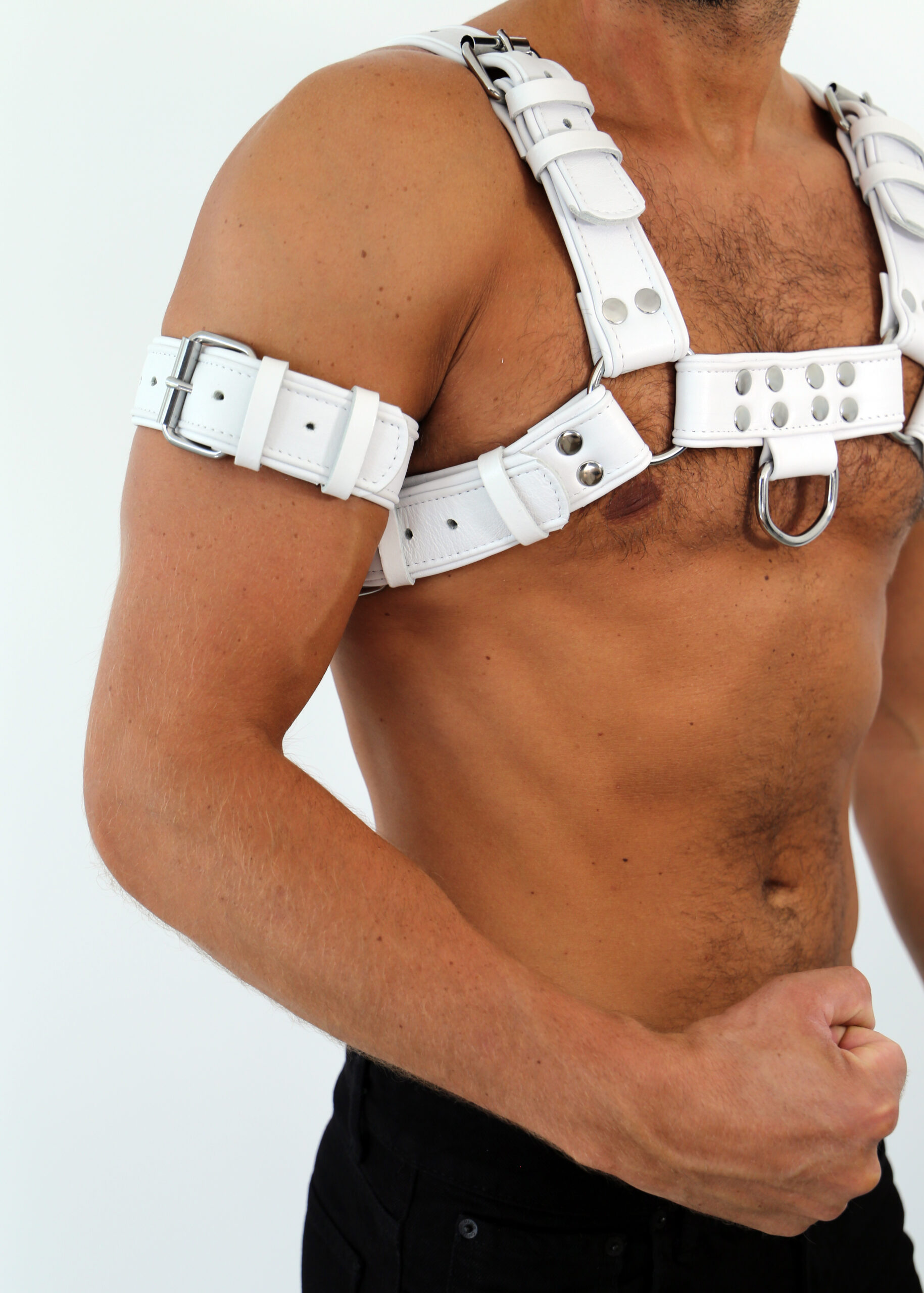Combine all leather armbands with the matching accessories, like the leather harness or the leather jock.