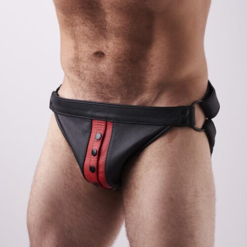 Combine all leather jocks with the matching accessories, like the leather wristband, the chain cockring and the matchable leather harnesses.