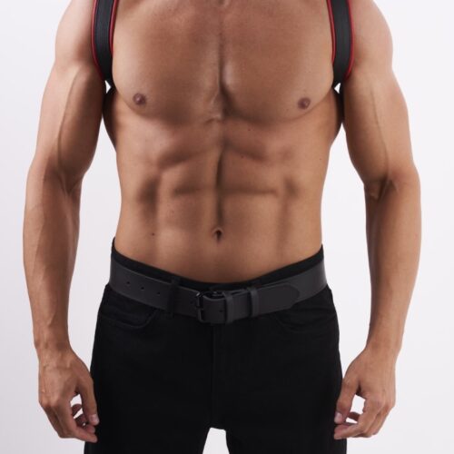 Combine all shoulder harnesses with matching accessories, like the narrow leather armbands, the leather thigh leg harness, and of course the matchable leather garrison cap.